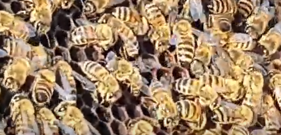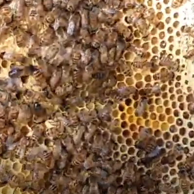 Come un bambino sono rimasto molto colpito da tutto ciò che ho visto: ho visto i fuchi e ho scoperto che hanno occhi molto più grandi delle loro compagne; ho visto api cariche di polline di rientro dal loro volo; ho visto api indicare alle compagne il tragitto da compiere per arrivare a trovare del polline, ho visto piccole crepe nella casetta sistemate dalle api con la propoli; ho imparato il significato della parola sciamatura; e all’ultimo telaio esaminato ho visto lei, la regina dell’alveare, impegnata nella ricerca di celle pronte ad accogliere uova da lei stessa prodotte.